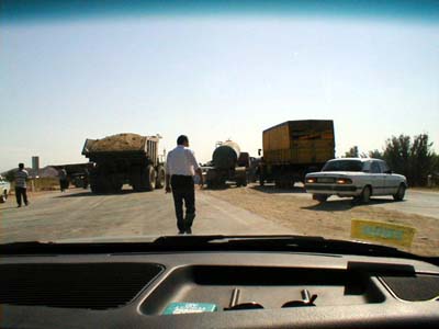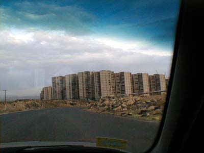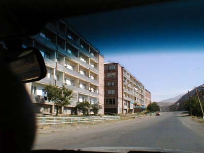 イェレヴァンを後にして。巨大団地群 。そして途中、ストライキしててなかなか通して貰えませんでした。