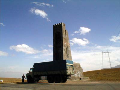 この時見掛けたイラン人は皆、トラック運転手でした。石碑には縦書きで「シィシアン」と書いてあります。