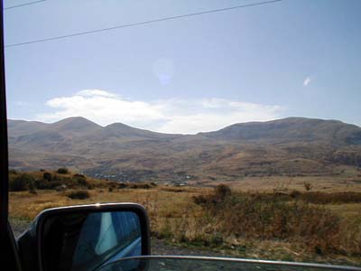 荒涼とした南アルメニアの風景。遠くに集落が見えます。多分100人も住んでいないでしょう。