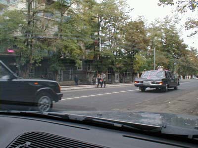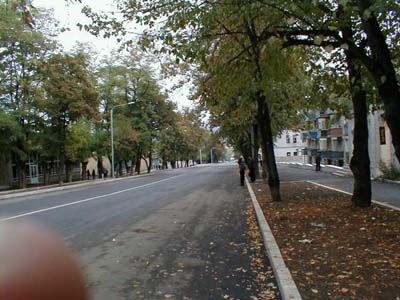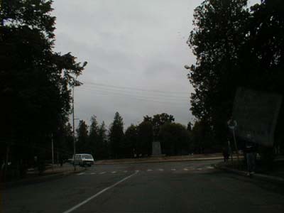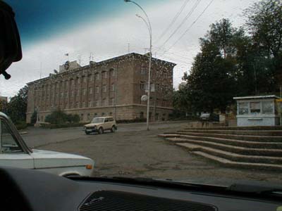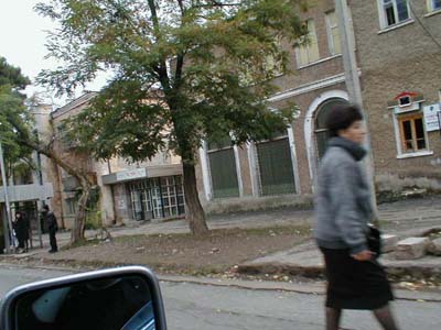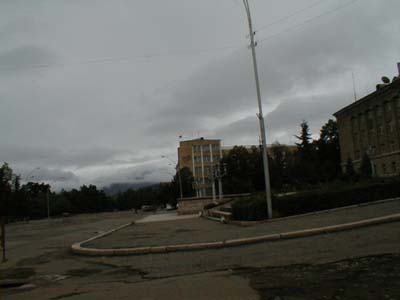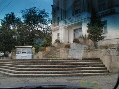 レーニン広場を少し入った所。この辺は道路がボコボコしてました。カラバフホテルの入り口。キオスクがポツンとあります。