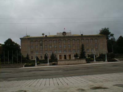 確か、共和国最高会議庁舎だったような、、、朝食はいつもココでした。「我らの山」像。天気が悪くて写真撮影に大失敗ッ!