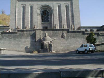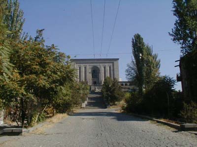 このエラそうな建物が「古文書図書館」。アルメニア語で「マテナダラン」という。
